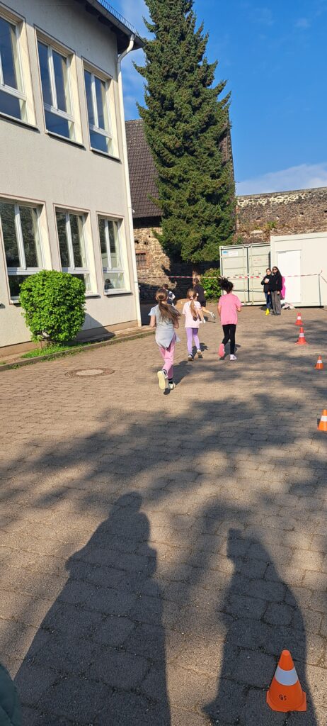 Dann ging es endlich los: Runde für Runde drehten die Kinder ihre Bahnen – und das mit beeindruckendem Durchhaltevermögen. Denn nicht die Schnelligkeit zählte, sondern die Ausdauer. Viele Kinder wuchsen dabei über sich hinaus und schafften es, bis zu 30 Minuten ohne Pause zu laufen. Entlang der Strecke wurde kräftig angefeuert, sodass eine tolle Gemeinschaftsatmosphäre entstand.