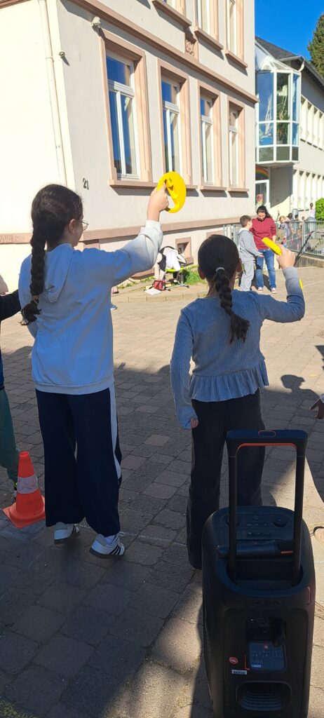 Am 21.04. und 23.04. wurde es wieder sportlich auf unserem Schulgelände: Das Laufabzeichen des Deutschen Leichtathletik-Verbandes (DLV) stand an! Schon zu Beginn herrschte beste Stimmung, als alle gemeinsam zum Lied „Auf die Plätze, fertig, los!“ sangen und tanzten.